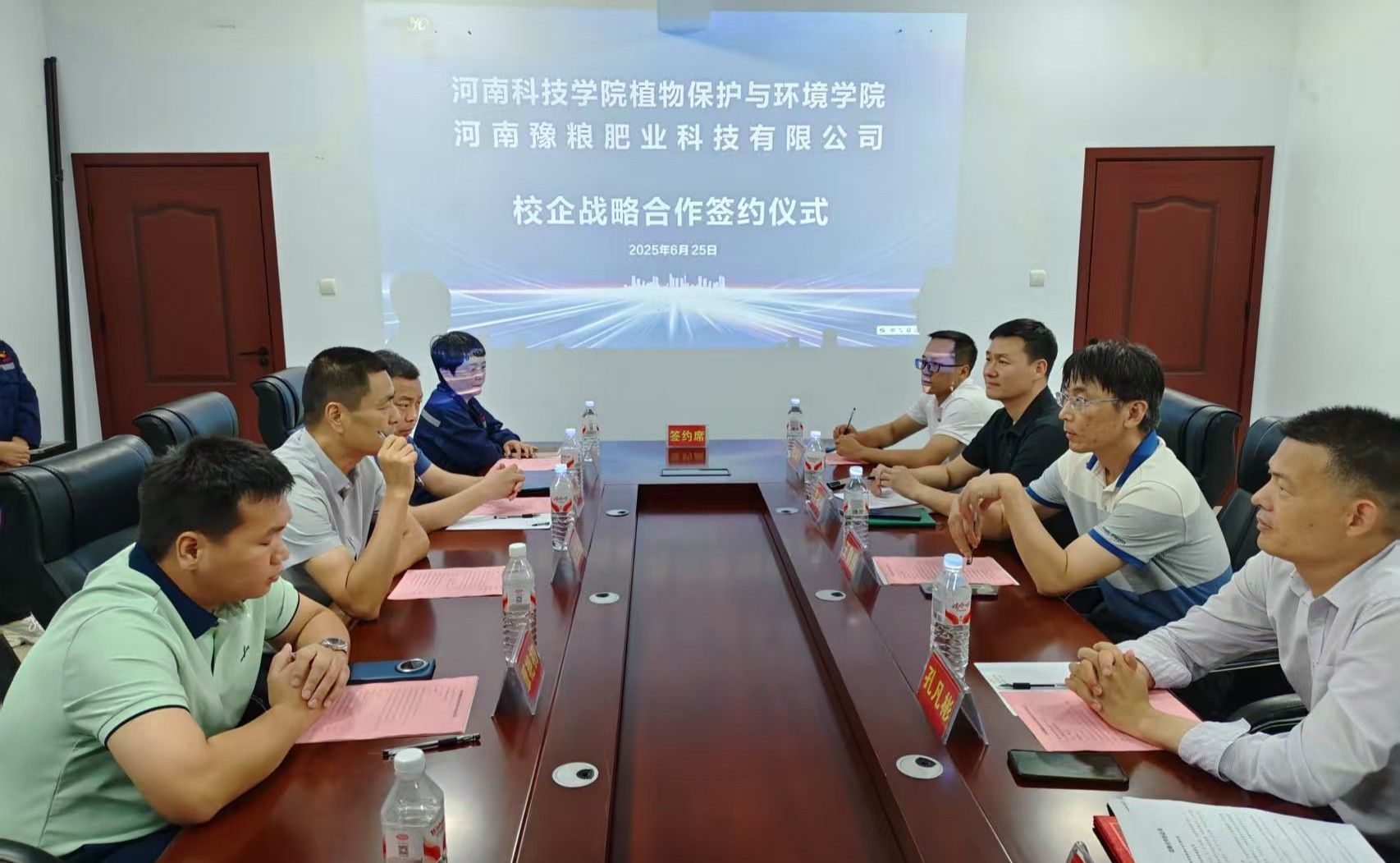在座谈会上,豫粮肥业董事长刘振岭对学院一行的到访表示欢迎,详细介绍了企业发展历程、产业布局及技术创新等情况。李松伟介绍了学校的基本情况,学院的历史沿革、师资队伍、科研平台、科研成果、专业优势及特色、校企合作等情况。胡生利表示,开发区将全力支持校企深度合作,共同推动区域农业绿色发展。王鲁伟与刘振岭共同签署了校企战略合作协议。孔凡彬为刘振岭董事长颁发了客座教授聘书;双方还共同为“河南科技学院大学生就业实习基地”揭牌。双方在人才培养、项目合作等方面进行了深入的交流。随后王鲁伟一行参观了企业研发中心、生产车间及实验基地,详细了解了企业在肥料研发、生产管理、市场推广及绿色农业技术应用等方面的成果与发展规划。