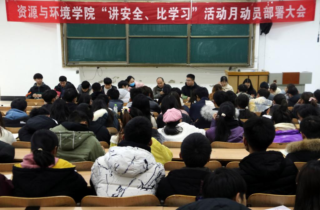 12月8日中午,资源与环境学院“讲安全、比学习”活动月动员部署大会在0#1举行。院党委副书记刘军锋、专兼职辅导员及全体学生干部参加动员会。动员会由院团委书记姜丽娟主持。