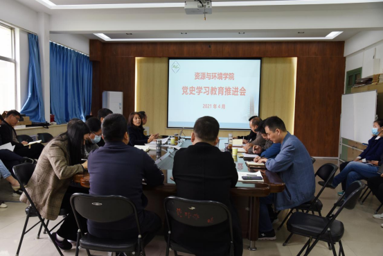 4月16日上午,资源与环境学院在实验楼E307会议室举行党史学习教育推进会。学院全体教师党员参加会议。会议由党委书记高扬帆主持。