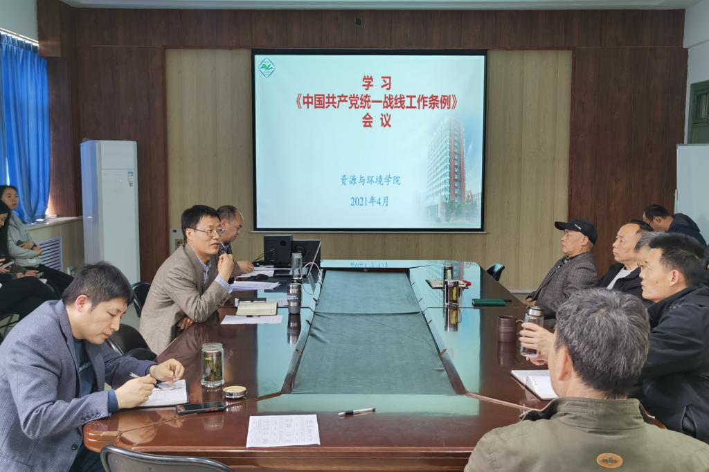 4月22日下午,资源与环境学院在实验楼E307会议室召开《中国共产党统一战线工作条例》(以下简称《条例》)专题学习会议。院党政领导及全体教职工参加会议。