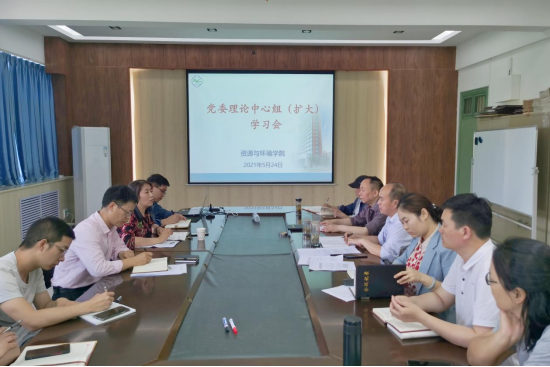 5月24日上午,资源与环境学院在实验楼E307会议室举行党委理论中心组(扩大)学习会。学院党政领导及全体党支部书记等10余人参加会议。会议由党委书记高扬帆主持。