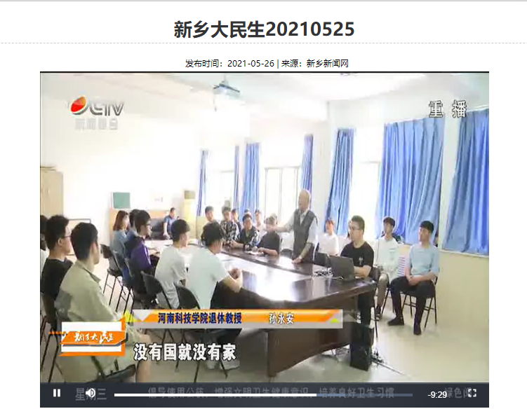 【新乡电视台】5月23日,新乡电视台大民生栏目播出孙永安教授的为资源与环境学院师生讲党课的视频(-9分28秒至-5分26秒)