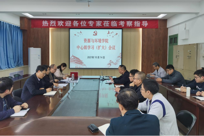 10月14日下午,资源与环境学院在实验楼E307会议室召开中心组学习(扩大)会议。学院党政领导、专职辅导员及全体2021级班主任参加会议。会议由院党委书记高扬帆主持。