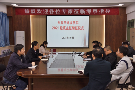 为强化全员育人氛围,提升班主任队伍的管理能力和业务水平,10月14日下午,资源与环境学院在实验楼E307会议室举办新生班主任聘任仪式暨培训会议。党委书记高扬帆、院长王洪亮、党委副书记刘军锋、党建组织员张少颖、副院长吴大付、王国昌及2021级新生班主任共十余人参加会议。会议由高扬帆主持。