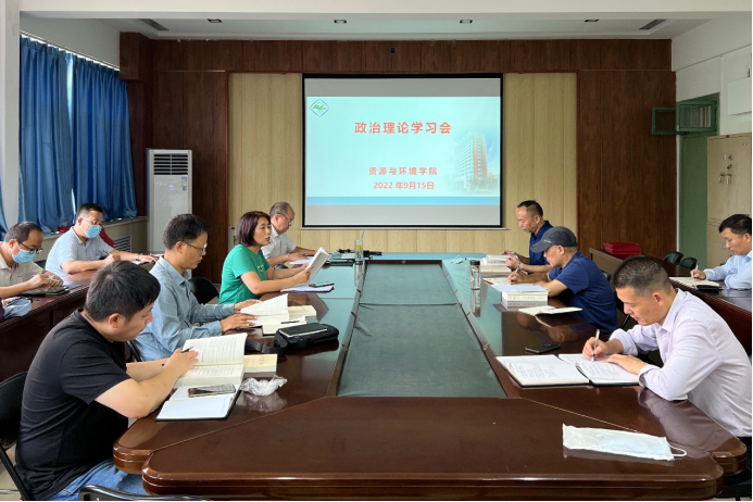 9月15日,资源与环境学院在实验楼E307会议室举行政治理论学习会议,学院全体领导班子成员、科级干部、党支部书记参加会议。会议由院党委书记高扬帆主持。