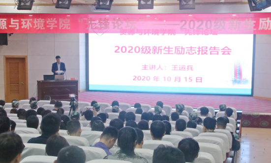 为了让新生尽快融入学校环境,更好的规划大学生涯,2020年10月15日晚,资源与环境学院在图教201举行新生励志报告会。报告会由王运兵教授主讲,院长王洪亮主持。