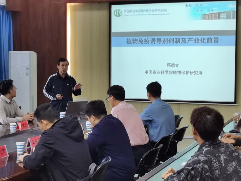 11月1日上午,资源与环境学院特邀中国农科院植保所邱德文研究员在E307会议室作了题为“植物免疫诱导剂创制及产业化前景”的学术报告。报告会由院长王洪亮教授主持,学院相关专业老师及研究生参加了报告会。