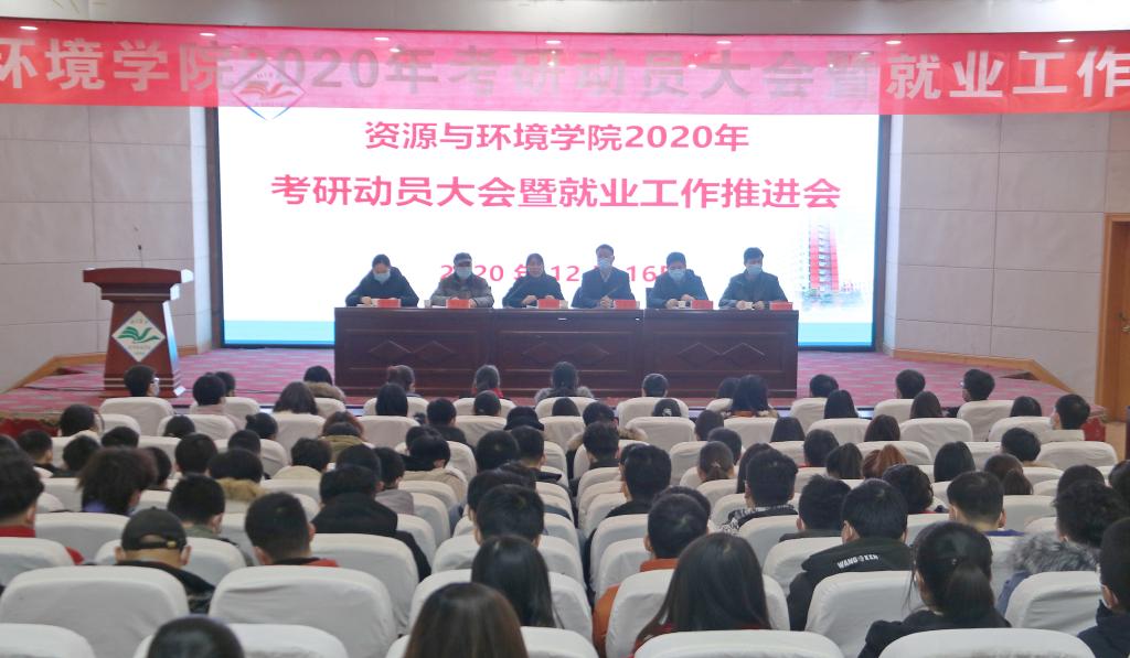 12月16日上午,资源与环境学院考研动员大会暨就业工作推进会在图教201举行。学院党政领导及2021届毕业生300余人参加会议,会议由院党委书记高扬帆主持。