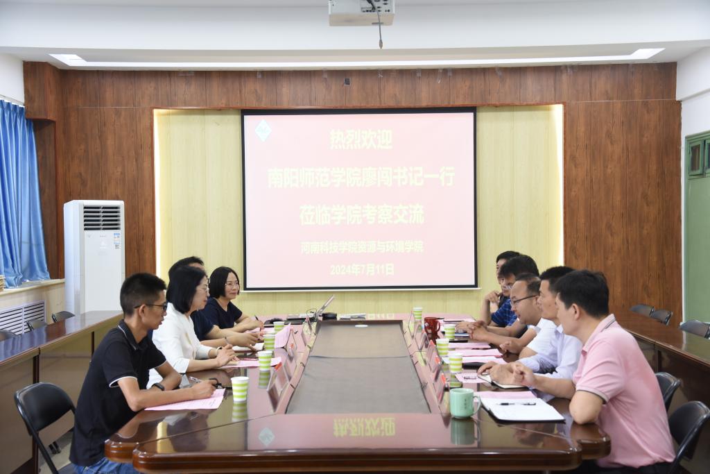 7月11日,南阳师范学院生命科技学院党委书记廖闯,院长牛秋红、现代生物技术研究院院长李丹丹,副院长唐存多来我院调研交流。资源与环境学院党委书记王鲁伟、院长刘润强、副书记刘军峰、副院长王国昌、孔凡彬、李松伟参加座谈会。