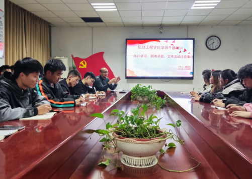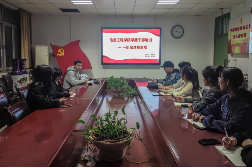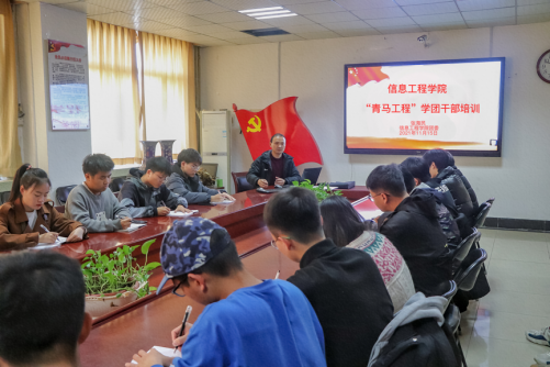为进一步加强我院学团组织建设,强化学团干部的工作任务、工作职责、工作要求,11月16日-11月23日,信息工程学院在0#502会议室开展了“青马工程”学团干部系列培训。学院党委副书记张建设,副处级党建组织员王明艳,团委书记张海民,辅导员曲富柱、袁家祺、任志伟参与开班仪式。学团骨干共70余人分批次参加培训。