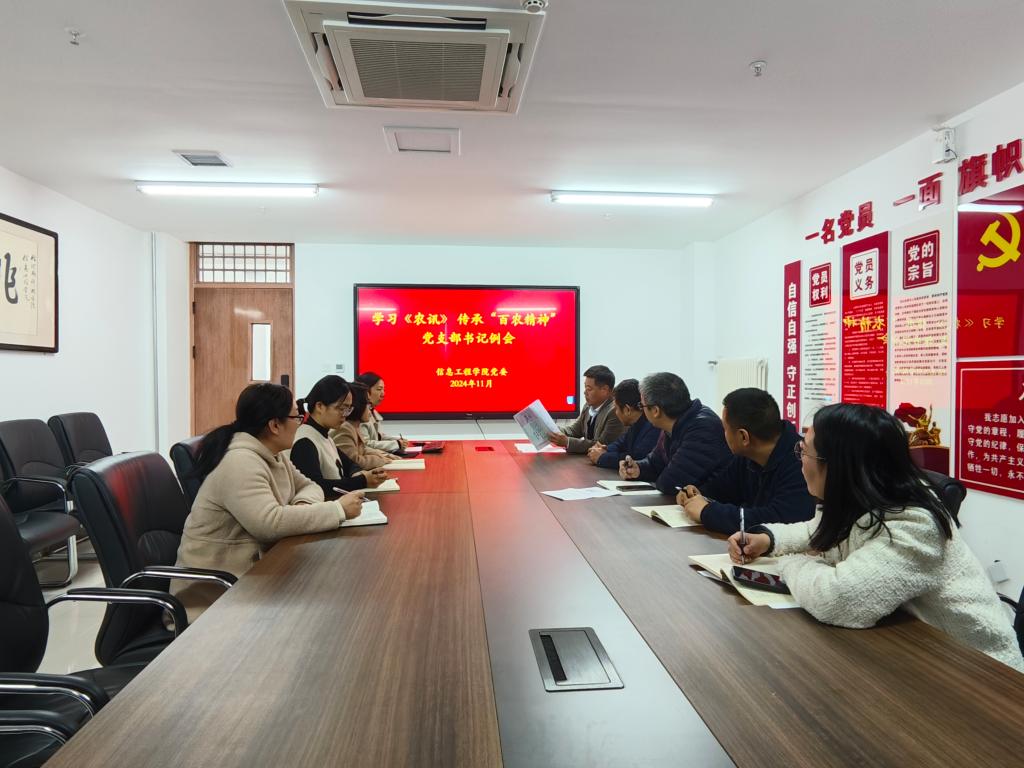 11月12日上午,信息工程学院于弘文楼404会议室召开学习《农讯》传承“百农精神”党支部书记例会。会议由学院党委书记李印主持。