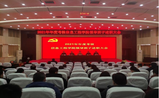 2月24日,信息工程学院在行政楼308会议室召开2021年度领导班子考核述职大会。学校考核组成员党委组织部副部长陈腾、纪委第一纪检监察室主任成继福、统战部统战科长雷晓环出席会议。信息工程学院领导班子成员、全体教职工参加会议。会议由陈腾主持。