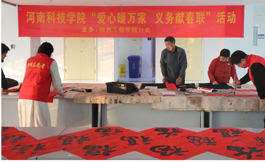 为进一步弘扬优秀传统文化,营造欢乐、喜庆的节日氛围,1月12日下午,信息工程学院分会邀请校书法协会在弘文楼五楼西大厅举办“爱心暖万家,义务献春联”活动。
