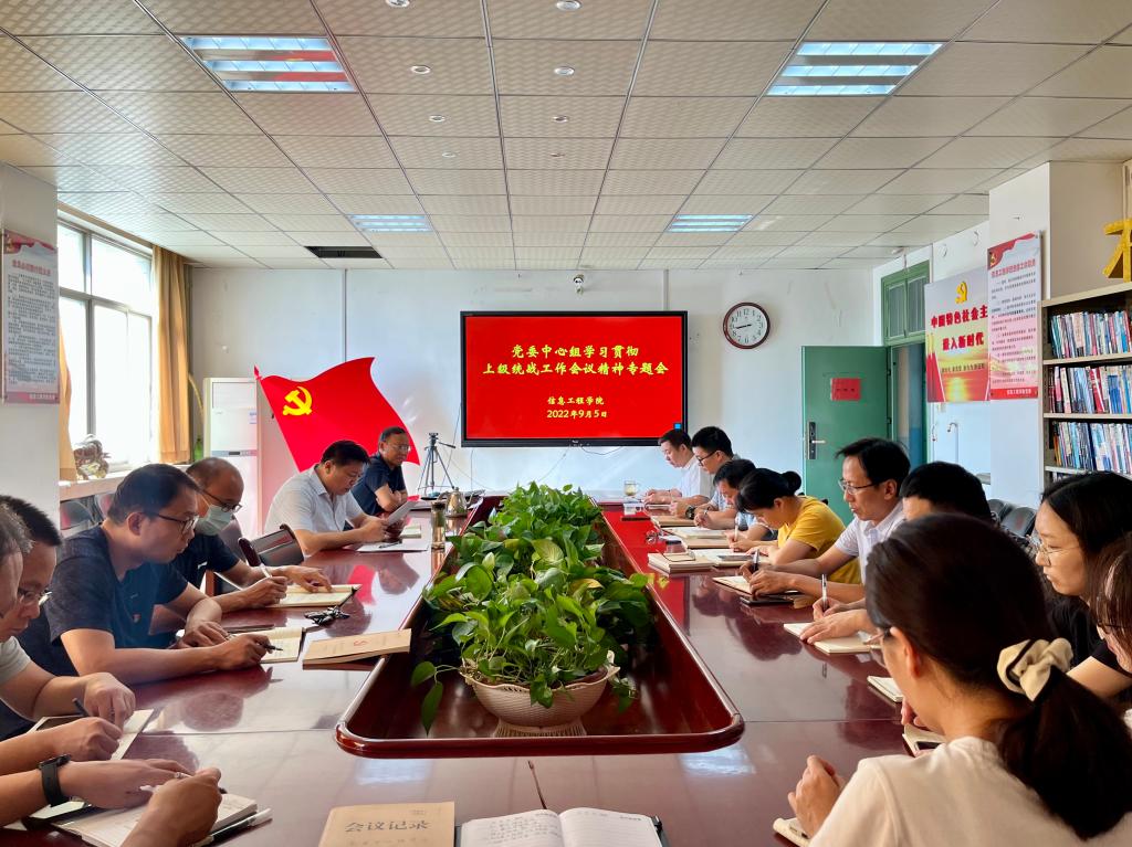 9月5日上午,信息工程学院党委召开专题会议,学习贯彻省委统战工作会议和学校会议精神,学院党政领导班子成员、党委委员和全体支部书记参加会议。会议由学院党委书记郎瑞红主持。