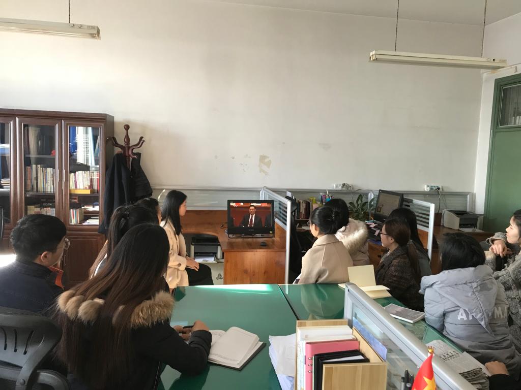 在收看大会中每一位师生都全神贯注地认真聆听和学习习近平总书记的重要讲话,真切地感受中国举世瞩目的巨大变化。从“逢山开路、遇水架桥”开拓中国特色社会主义道路,到与时俱进的当代中国发展进步故事,习近平总书记的讲话深入到了每一位聆听者的内心。
