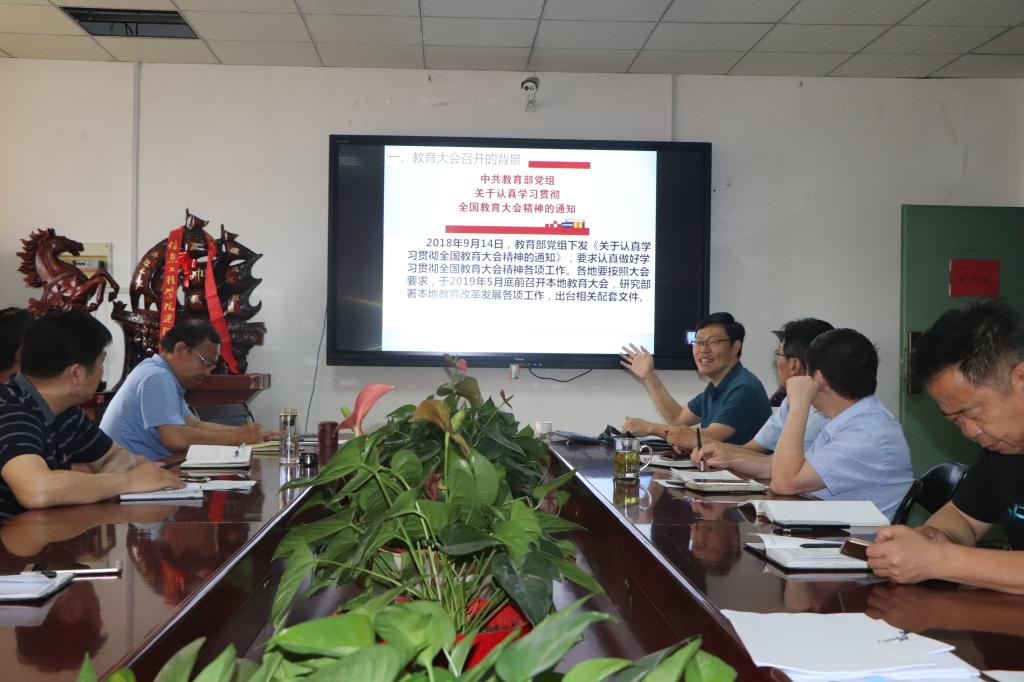 张希中老师从全省教育大会召开的背景、教育大会召开的重大意义、学习贯彻教育大会的重点任务和把握贯彻大会的实践要求等四个方面展开宣讲,结合实际案例,着重从八个方面对学习贯彻教育大会的重点任务进行详细阐述。强调了党对教育工作的全面领导的意义,落实立德树人的重要作用以及新时代的教育工作者应该具备的基本素养。张老师全面透彻的讲解,丰富详尽的案例,让在场教师有了更加深刻地认识。