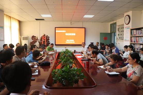 为迎接中国共产党成立98周年,深入学习贯彻习近平新时代中国特色社会主义思想和党的十九大精神,按照校党委组织部《关于开展“我为党旗添光彩”活动的通知》精神,6月27日,我院党委书记郎瑞红以《不忘初心 牢记使命 为实现伟大目标而奋斗!》为题开展“我为党旗添光彩——书记讲党课”活动。我院全体教工和学生党员参加了本次活动。