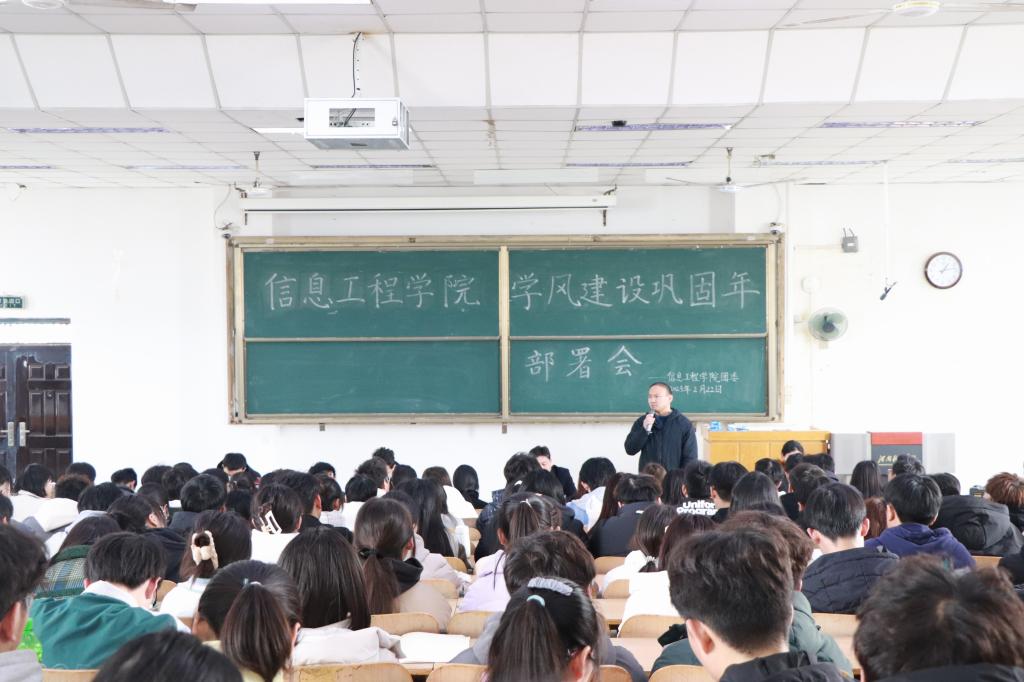 为形成学风建设长效机制,营造浓厚的学习氛围和良好的育人环境,2月22日中午,信息工程学院于零合四召开“学风建设巩固年”部署会。院党委副书记张建设,团委书记张海民,辅导员任志伟、曲东旭、李倩及全体学团干部参加此次会议,会议由张海民主持。