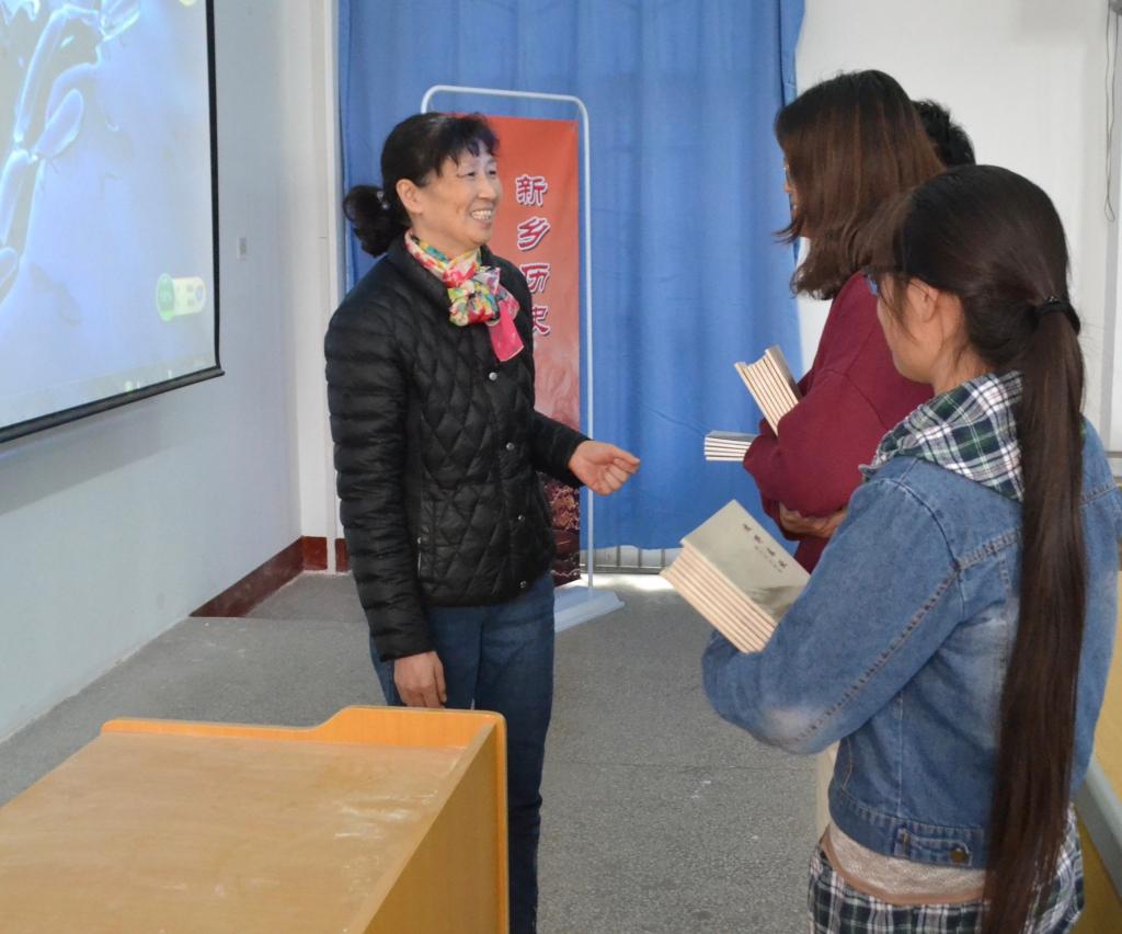 讲座开始前,张建设代表学院对新乡市地方史志局一行表示欢迎,并介绍本次讲座的宣讲人李俊杰。活动播放了一组新乡市历史短片,让大家对新乡历史有了更多的认知和理解。随后,宣讲人用生动幽默的语言、精准独到的见解,带领大家从“新乡由来 、历史遗迹、历史人物、今日新乡”四个方面回顾新乡的历史进程并展现如今新乡的巨大变化。感叹新乡市从古至今的蓬勃发展,展望新乡与时俱进、百业俱兴的美好未来。最后,新乡市地方史志局将编写的《牧野春秋》一书赠予现场的同学们,并表达了对同学们的美好祝愿,希望大家牢记使命,勇敢前行。