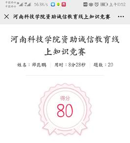 4. 线上答题。通过答题活动,以赛促学,引导全体学生学习金融、贷款、征信知识,提高了学生法律意识和信用意识。