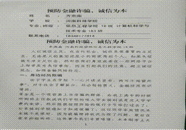 1.“树立诚信观念防范金融风险”主题征文。围绕“防范金融风险”主题,把推进“拒绝网络贷款”和“拒绝网络刷单”纳入主题教育活动的重要内容进行,使全体学生领悟了网络安全的新内涵。