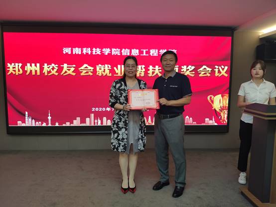 7月18日,信息工程学院郑州校友会就业帮扶颁奖会议在郑州举行,我校招生就业处副处长杨永生、院党委书记郎瑞红、院长李国厚、院党委副书记张建设、副院长高国红、教师代表李学勇及郑州校友会会长袁威等优秀校友参加了此次颁奖会议。