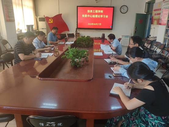 8月27日,信息工程学院党委理论学习中心组召开“以案促改”专题学习会,传达学习校党字【2020】35号文件和省教育系统党员干部违纪违法案例。全体学院领导参加学习会,学院党委书记郎瑞红主持会议。