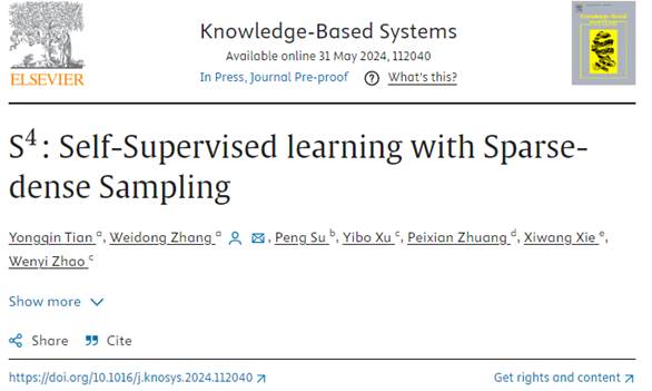 近日,信息工程学院(计算机应用研究所)在计算机科学领域国际顶级学术期刊《Knowledge-BasedSystems》(IF=8.8,中科院一区TOP期刊,JCR一区)上发表了题为《S4:Self-Supervised learning with Sparse-dense Sampling》的学术论文。论文第一作者为我院硕士研究生田勇勤同学,通讯作者为张卫东博士。