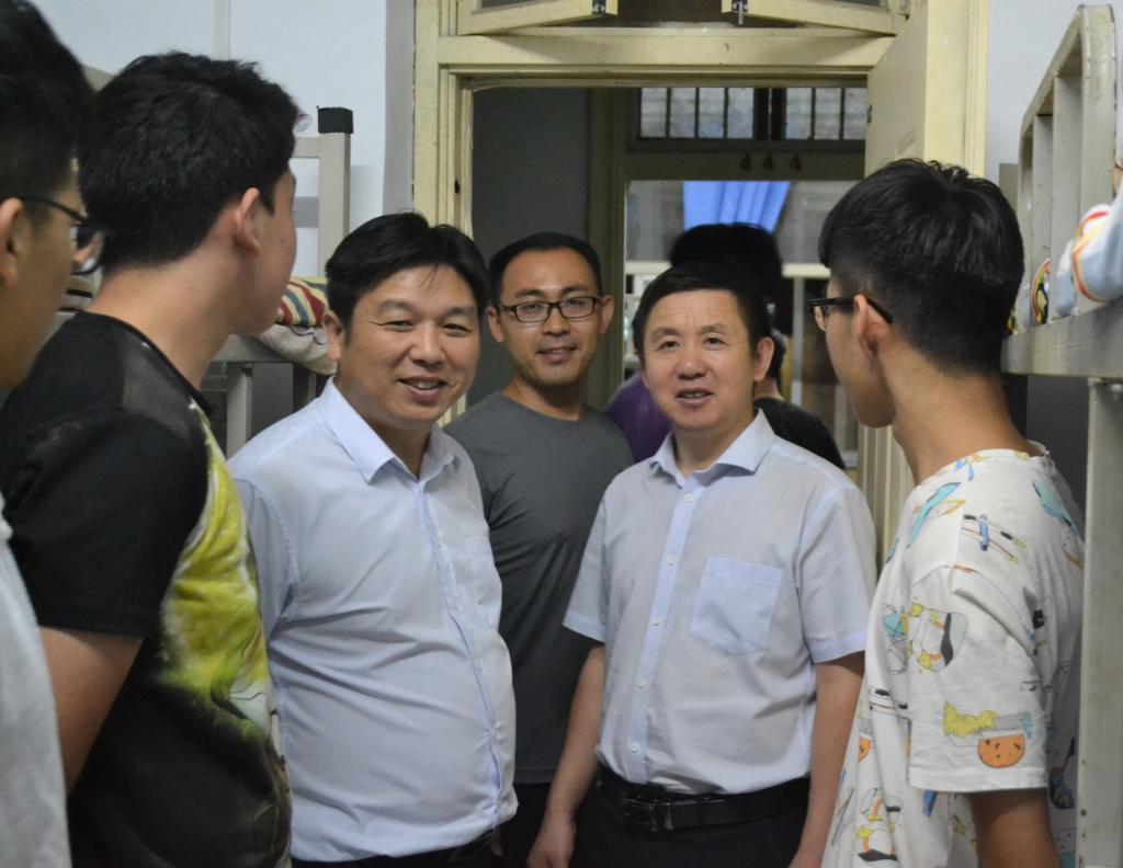 走访宿舍过程中,各位领导仔细检查了新生宿舍的各项设施,详细询问了新生报到手续的办理情况及入校后的适应情况,对新生们所提出的问题进行了细致的解答。领导强调指出宿舍是同学们的第二个家,宿舍应当要保持干净整洁,室友之间也要和睦相处,共同进步。党委书记郎瑞红亲切的与新生们一起讨论“如何度过大学”,他告诉新生:要有坚定的理想信念,个人的理想要和国家的发展紧密结合。同时表达了对同学们期待:希望你们能拥有一个精彩的大学生活,四年后顺利走上社会,用所学知识回馈社会。