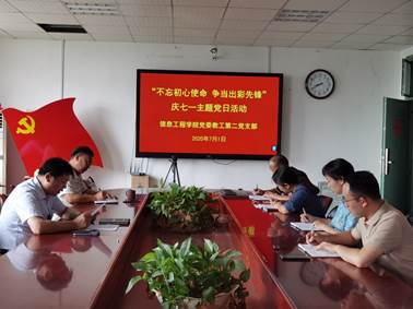 7月1日上午,按照校党委组织部的部署,信息工程学院教工第二党支部在502党员活动室举行“牢记初心使命,争当出彩先锋”主题党日活动。