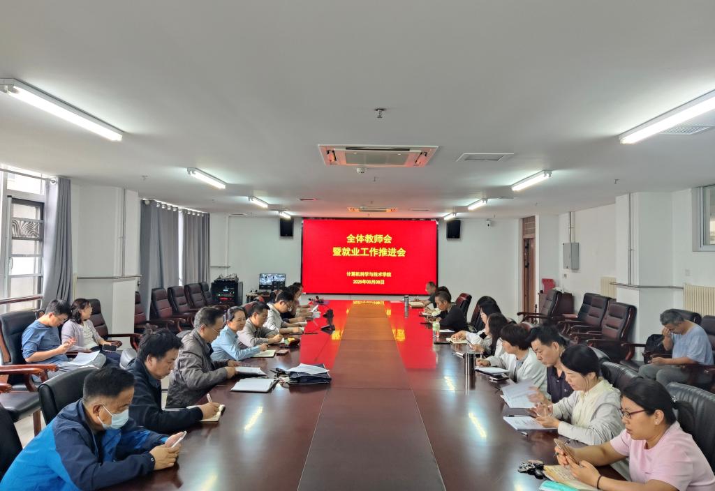 为进一步推动2025届毕业生高质量充分就业,5月8日下午,计算机科学与技术学院在弘德楼A213会议室召开全体教师会暨就业工作推进会。学院领导班子、全体教师参加会议。会议由党委书记周启主持。