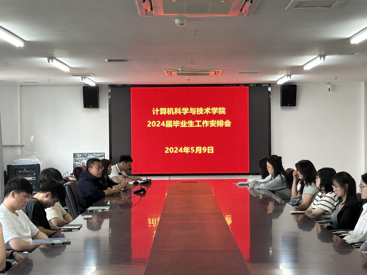 为进一步推动我院2024届毕业生更加充分更高质量就业,5月9日,计算机科学与技术学院在弘德楼A213会议室召开2024届毕业生工作安排会,学院党委书记周启、党委副书记董华明、负责就业工作的辅导员以及30余名毕业班学生代表参加会议。