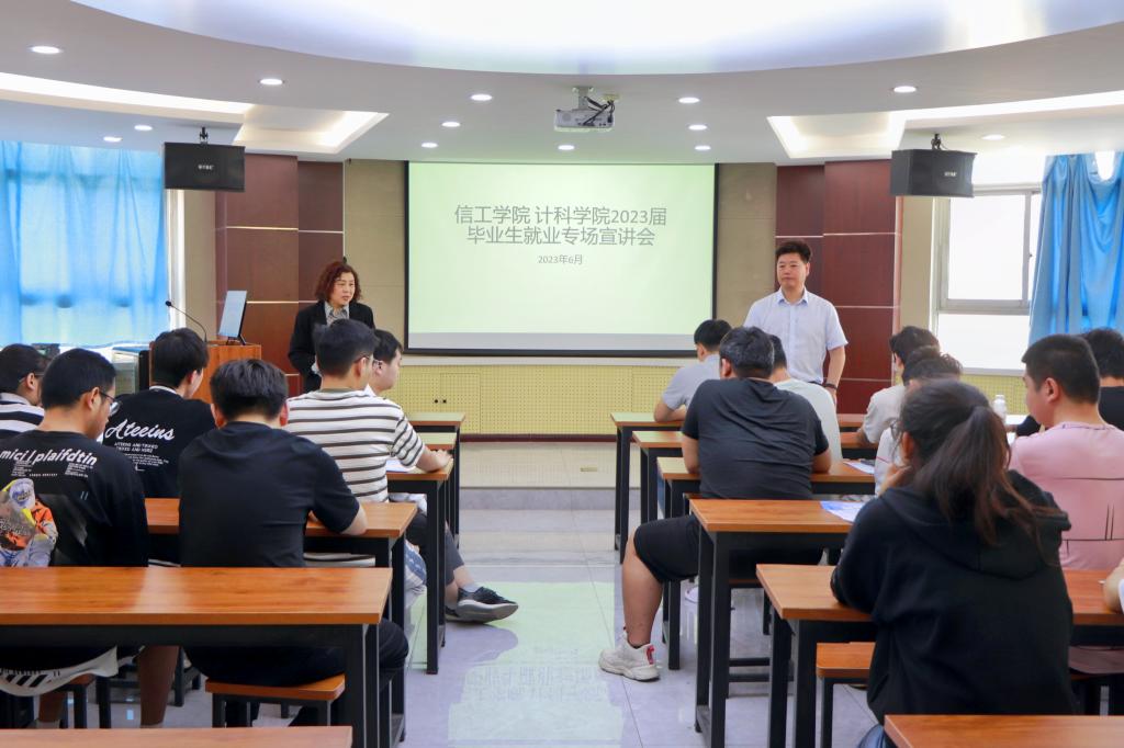 为有效落实国家和河南省关于高校毕业生就业工作的决策部署,持续推进2023届毕业生全面高质量就业,6月1日,计算机科学与技术学院和信息工程学院在综合实验楼三楼会议室召开就业专场招聘双选会,8家企业代表以及2023届部分毕业生参加了本次招聘会。计算机科学与技术学院党委书记周启和信息工程学院党委书记李印等领导亲临现场指导,与参会企业和学生进行了深入交流。