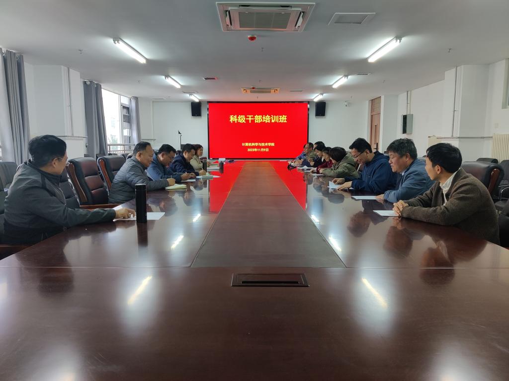 为了进一步提升科级干部的政治素质、业务能力和管理水平,更好地服务于学院的各项工作,11月9日,计算机科学与技术学院科级干部培训班在弘德楼A213会议室开班。此次培训班第一讲由学院党委书记周启主讲,学院副科级以上干部参加。
