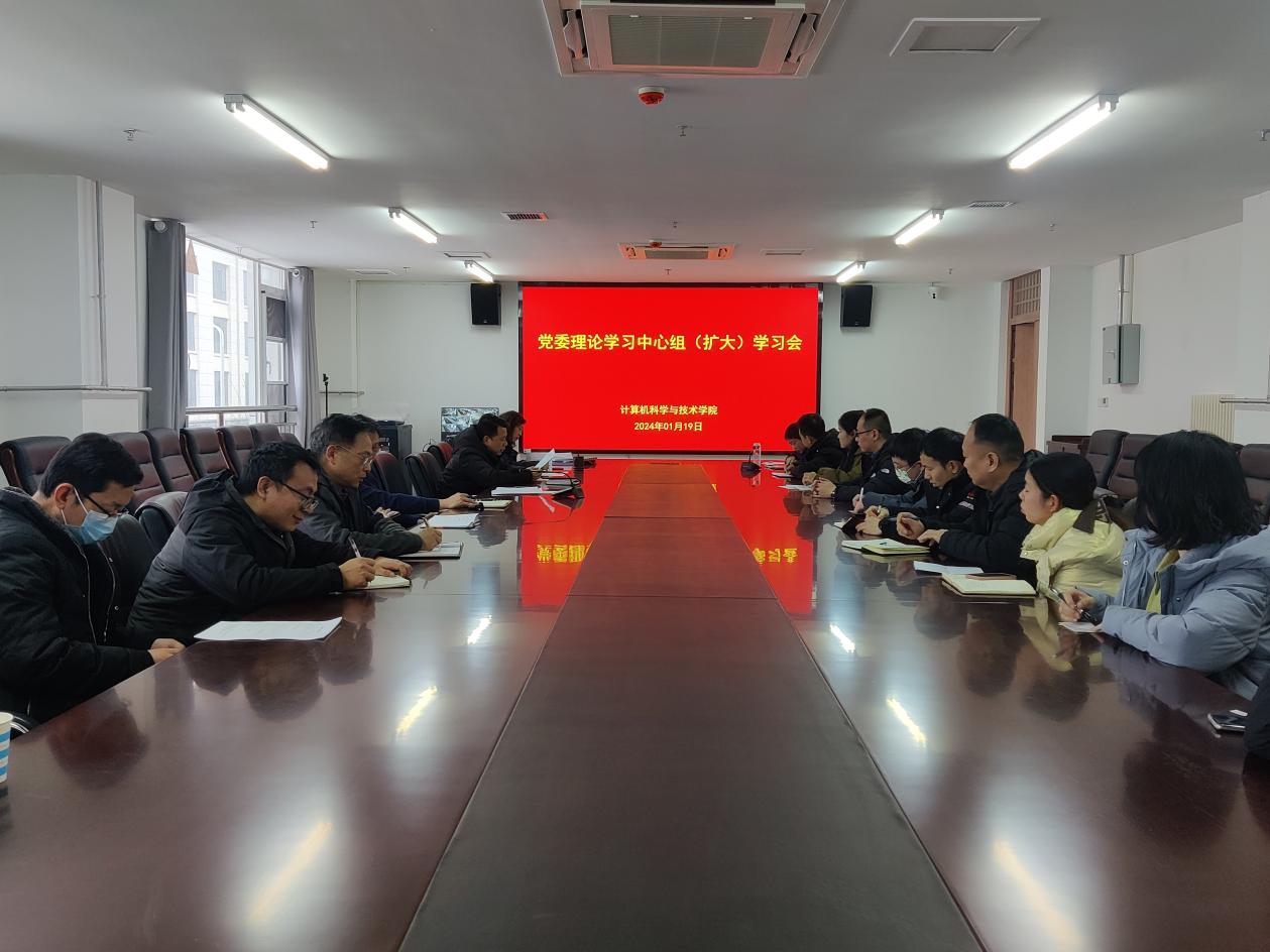 1月19日下午,计算机科学与技术学院在弘德楼213会议室召开党委理论学习中心组(扩大)学习会,学院党委理论学习中心组成员、党支部书记和科级干部参加了学习会,会议由院党委书记周启主持。