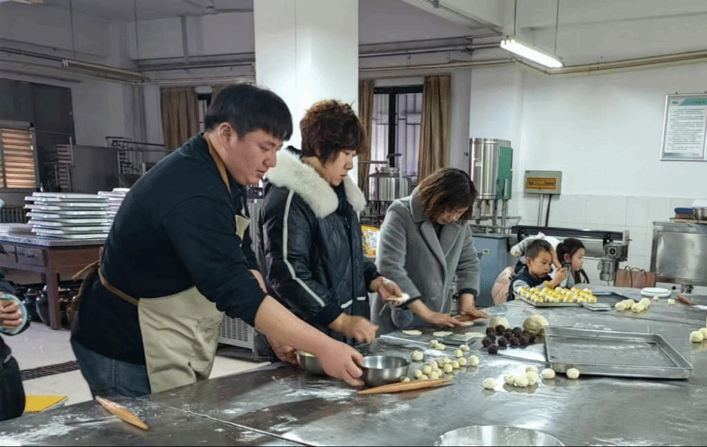 活动伊始,烘焙老师向大家介绍了如何制作蛋黄酥和青团,随后,大家有条不紊地秤面团、擀皮、包馅、成型和烘焙,在欢声笑语中享受烘焙带来的欢乐。不一会儿蛋黄酥和青团出炉,大家欣喜地分享着、品尝着劳动成果,感受着美食与文化的魅力。