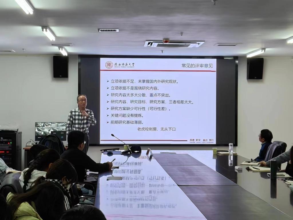12月11日下午,陕西师范大学二级教授、博士生导师杨波教授应邀为我院师生作了题为《NSFC申请书的撰写》的学术报告。报告会由院长高国红主持,计算机科学与技术学院全体班子成员、学院教师以及研究生等60余人参加并听取了本次报告会。