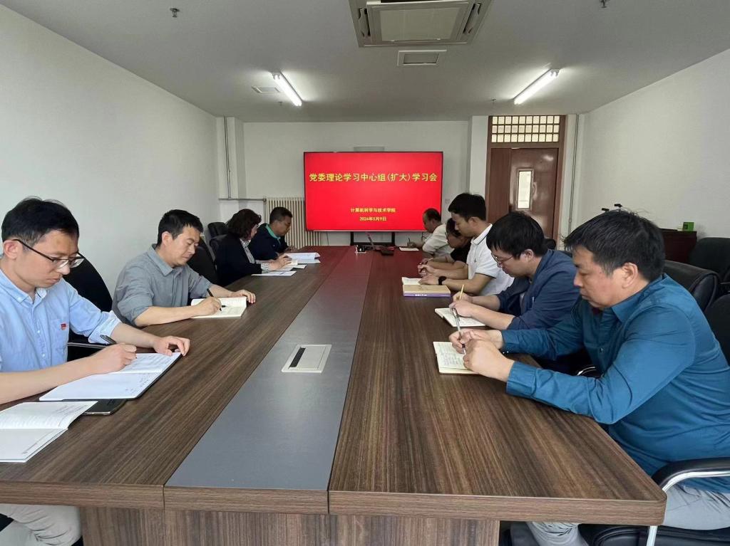 5月9日下午,计算机科学与技术学院在弘德楼A308会议室召开党委理论学习中心组(扩大)学习会,学院党政领导班子和支部书记参加会议。会议由学院党委书记周启主持。