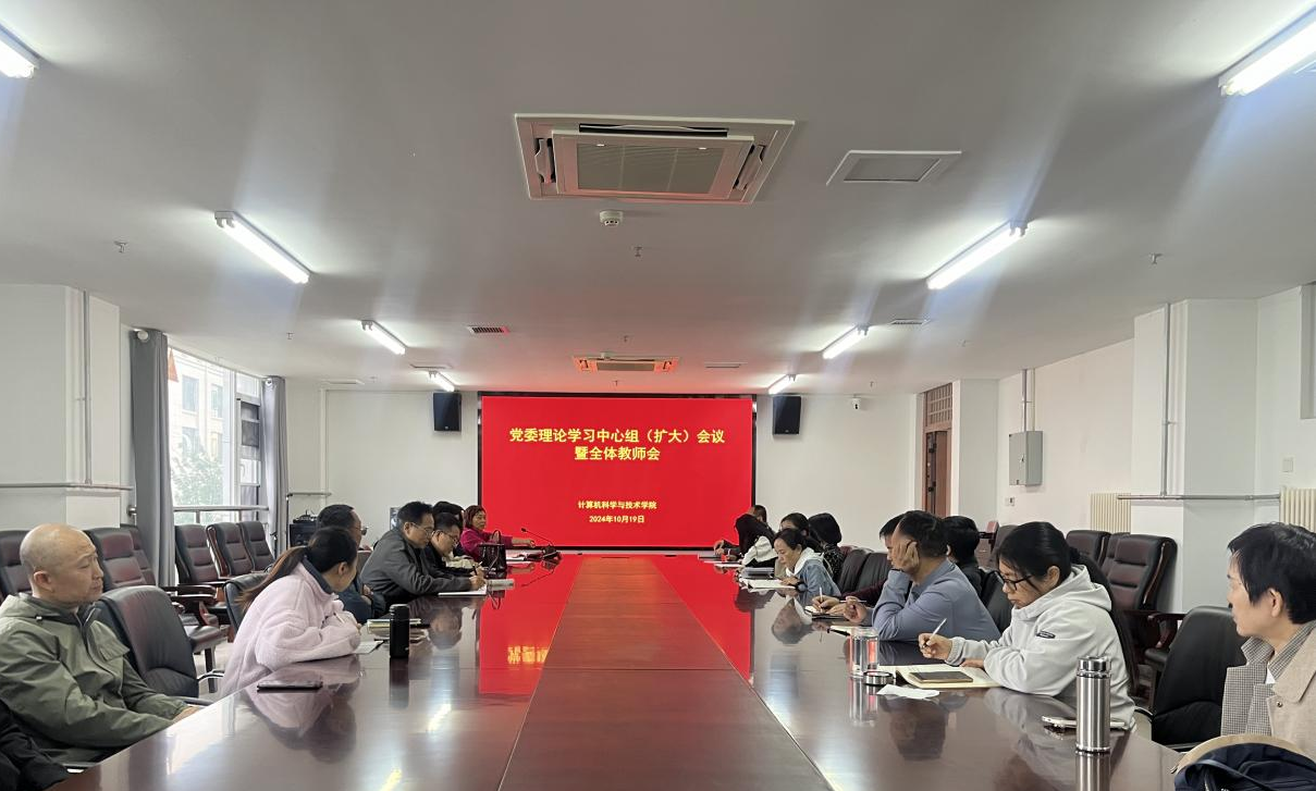 10月19日上午,计算机科学与技术学院在A213会议室召开理论学习中心组(扩大)会议,专题学习习近平总书记在全国教育大会上的重要讲话精神,以及全省教育大会精神。会议由学院党委书记周启主持,全院教职工参加学习。