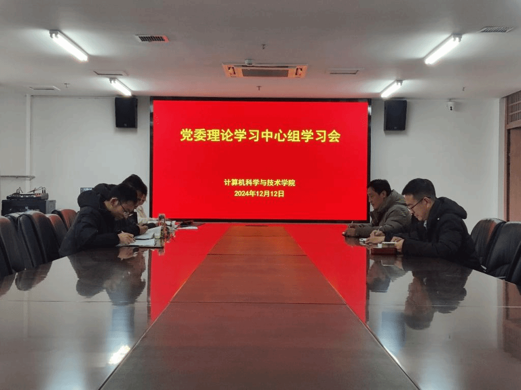 12月12日下午,计算机科学与技术学院在弘德楼A213会议室召开党委理论学习中心组学习会。学院党委委员和班子成员参加会议,会议由学院党委书记周启主持。