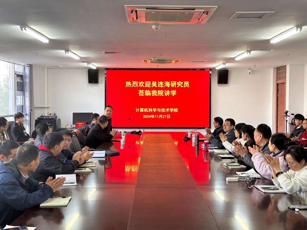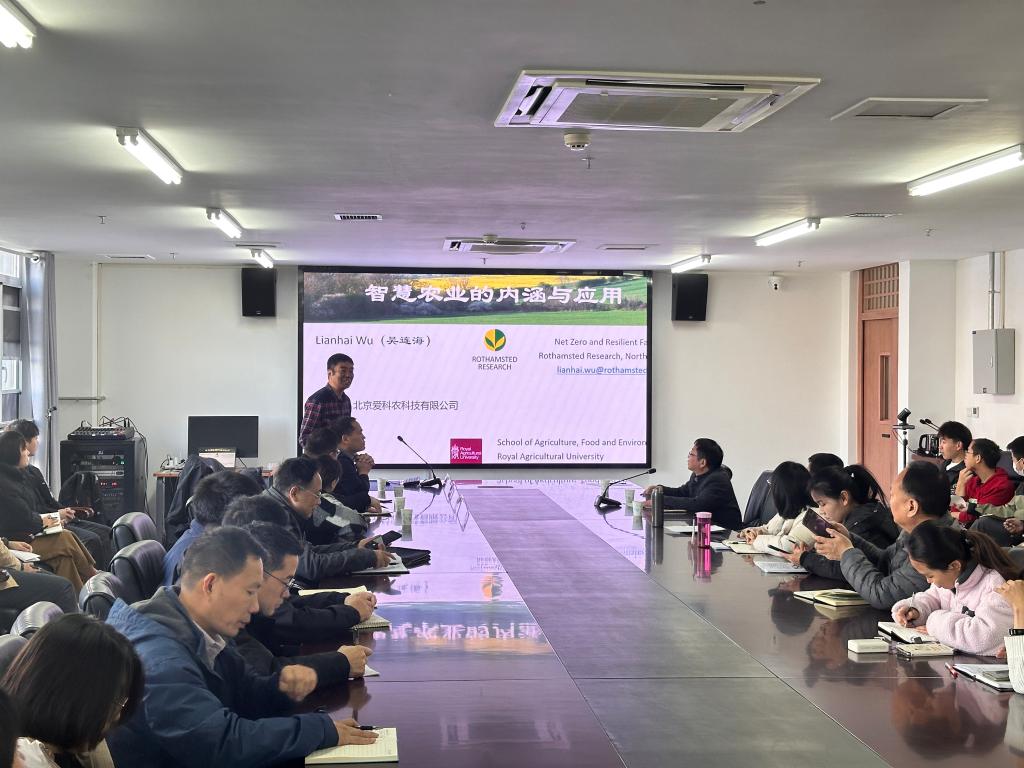 11月27日上午,北京爱科农科技有限公司首席科学家、洛桑研究所资深研究员、英国皇家农业大学访问教授吴连海博士,应邀在计算机科学与技术学院A213会议室做了题为《智慧农业的内涵与应用》的学术报告。报告会由院长高国红主持,我院全体教师以及兄弟院系部分老师听取了报告并参与了研讨。