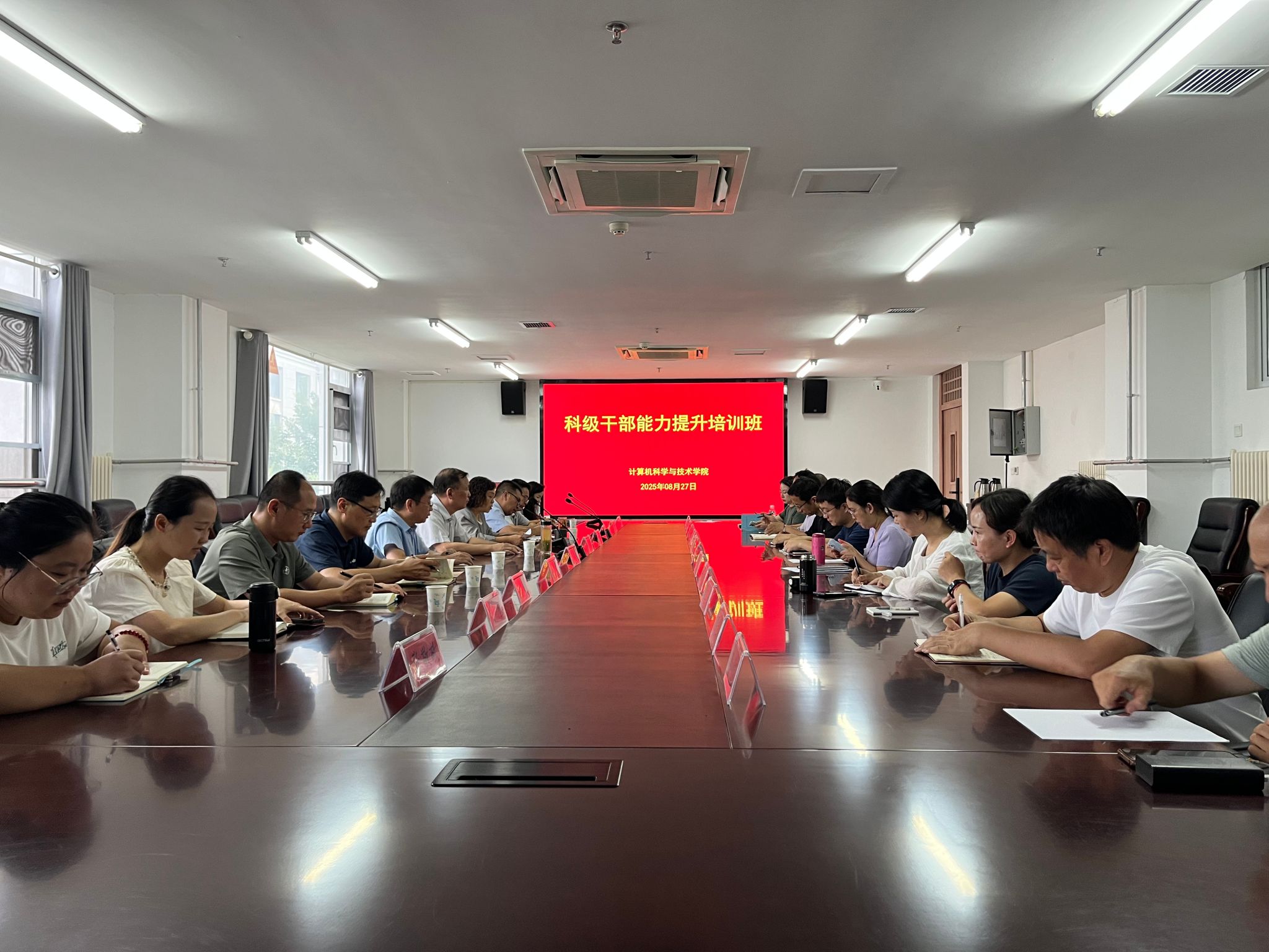 为传承弘扬“百农精神”,全面提升学院科级干部履职能力,8月27日,计算机科学与技术学院科级干部能力提升培训班在弘德楼A213会议室开班。副校长乐玉忠出席开班仪式并作专题报告,学院全体科级及以上干部参加培训班。开班仪式由学院党委书记周启主持。