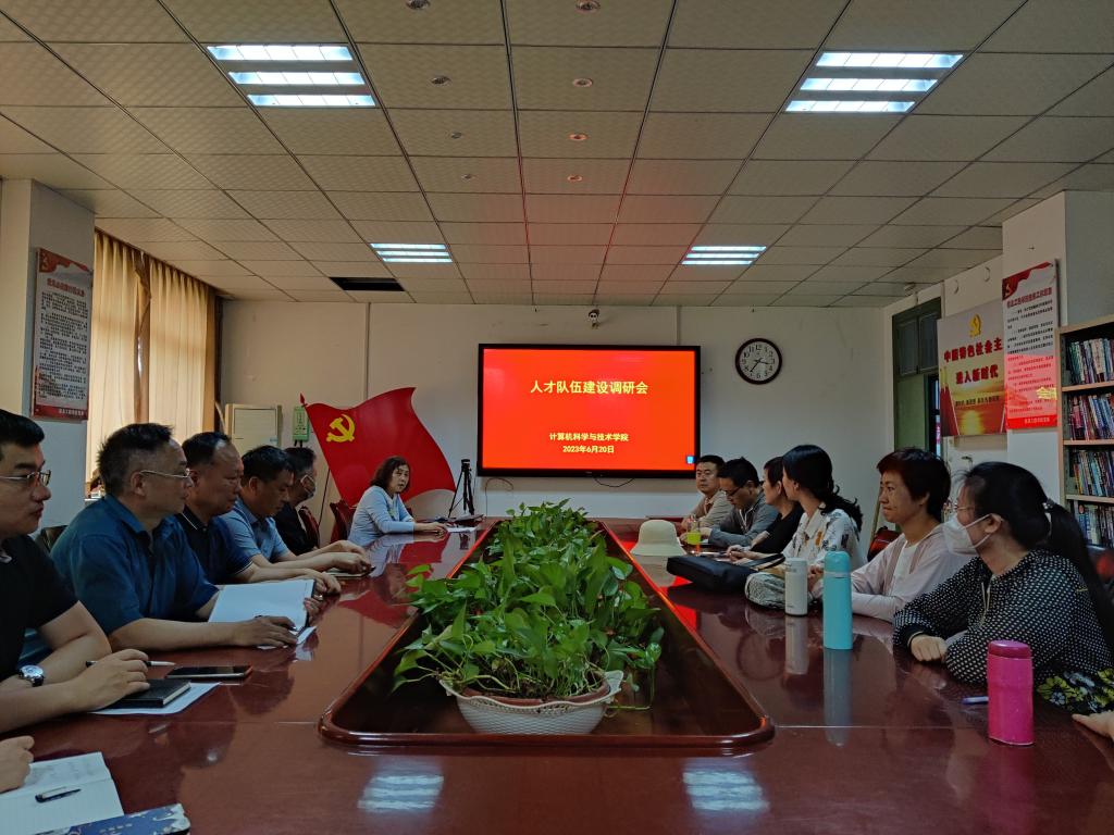 为深入开展学习贯彻习近平新时代中国特色社会主义思想主题教育,遵循中共中央办公厅《关于在全党大兴调查研究的工作方案》精神,6月20日下午,计算机科学与技术学院在0号楼502会议室召开人才队伍建设调研会,学院班子成员、科级干部、副高级以上职称及博士教师参加了调研座谈会。会议由学院党委书记周启主持。