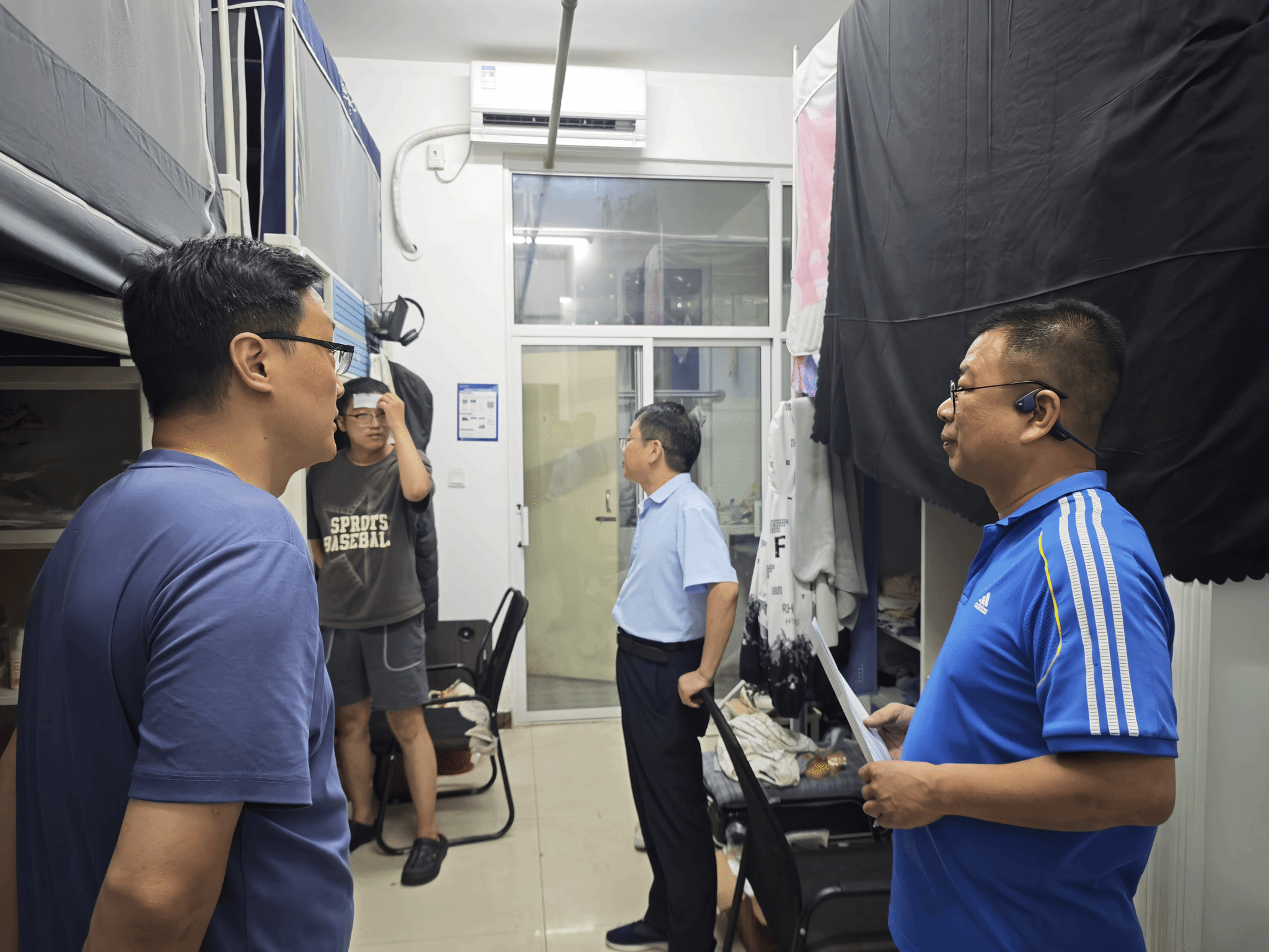 走访过程中,高国红询问同学们竞赛准备和学业进展等情况,叮嘱留校学生要充分利用假期时间,提升专业技能和综合素质,遵守宿舍和实验室的规章制度,注意用电安全,养成良好作息习惯,避免熬夜,确保人身安全。