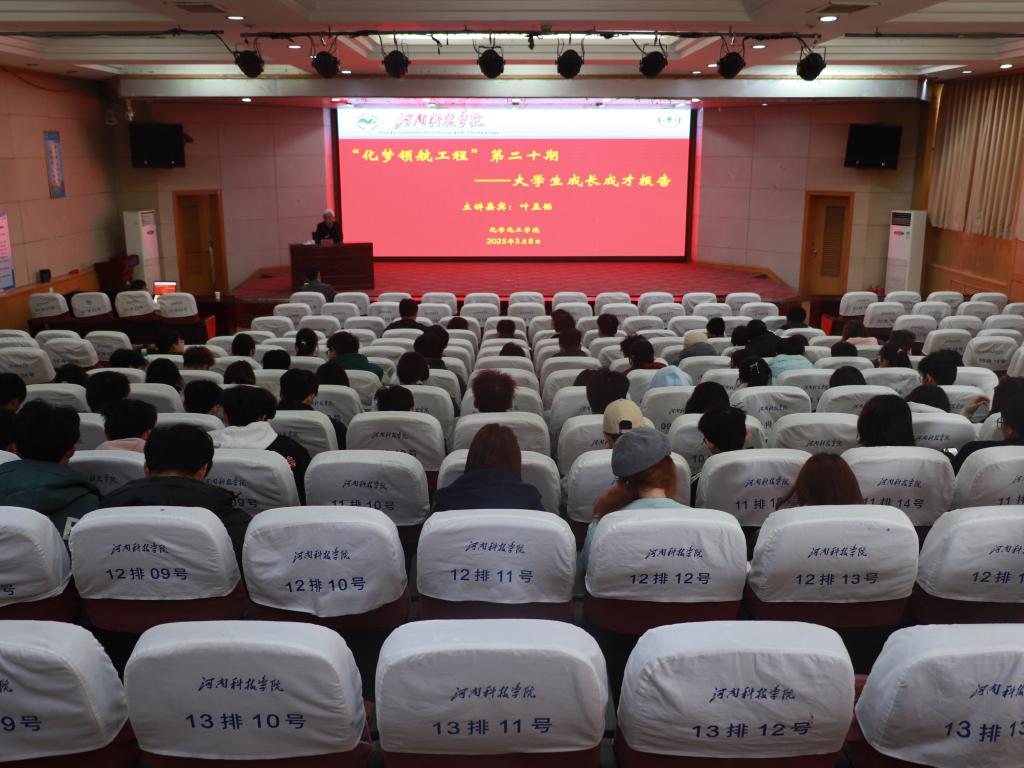 为助力学生全面成长,3月8日下午,化学化工学院在图书教室201开展第二十期“化梦领航工程”主题报告会。本次活动邀请了原数学科学学院党委书记叶孟韬教授主讲。会议由化学化工学院党委副书记谷永庆老师主持,2024级辅导员张卫鹏及200余名学生代表参与。