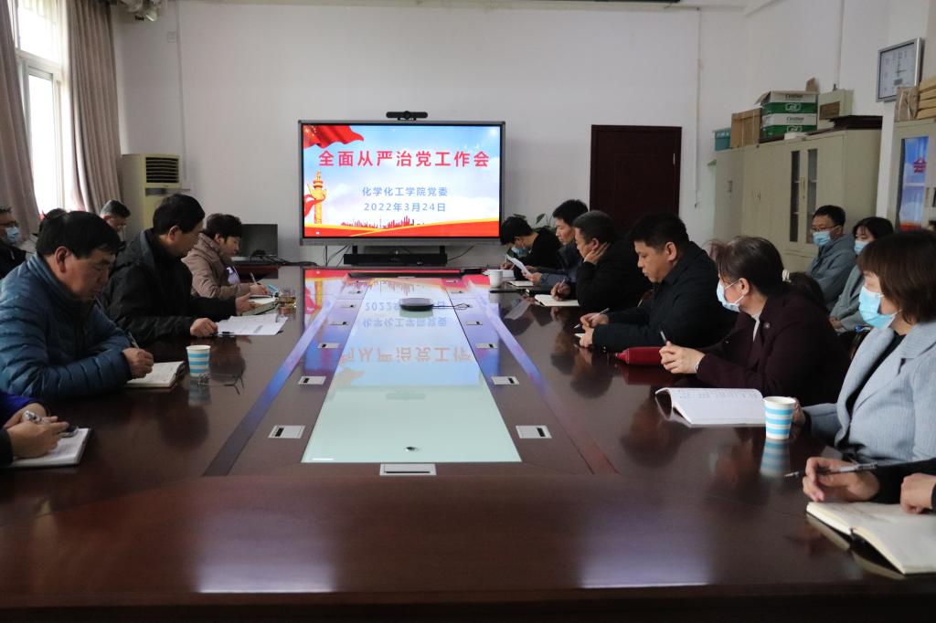 3月24日下午,化学化工学院在学院会议室召开全面从严治党工作会议,学院党委委员、支部书记、科级干部、教研室主任和辅导员参加了会议。