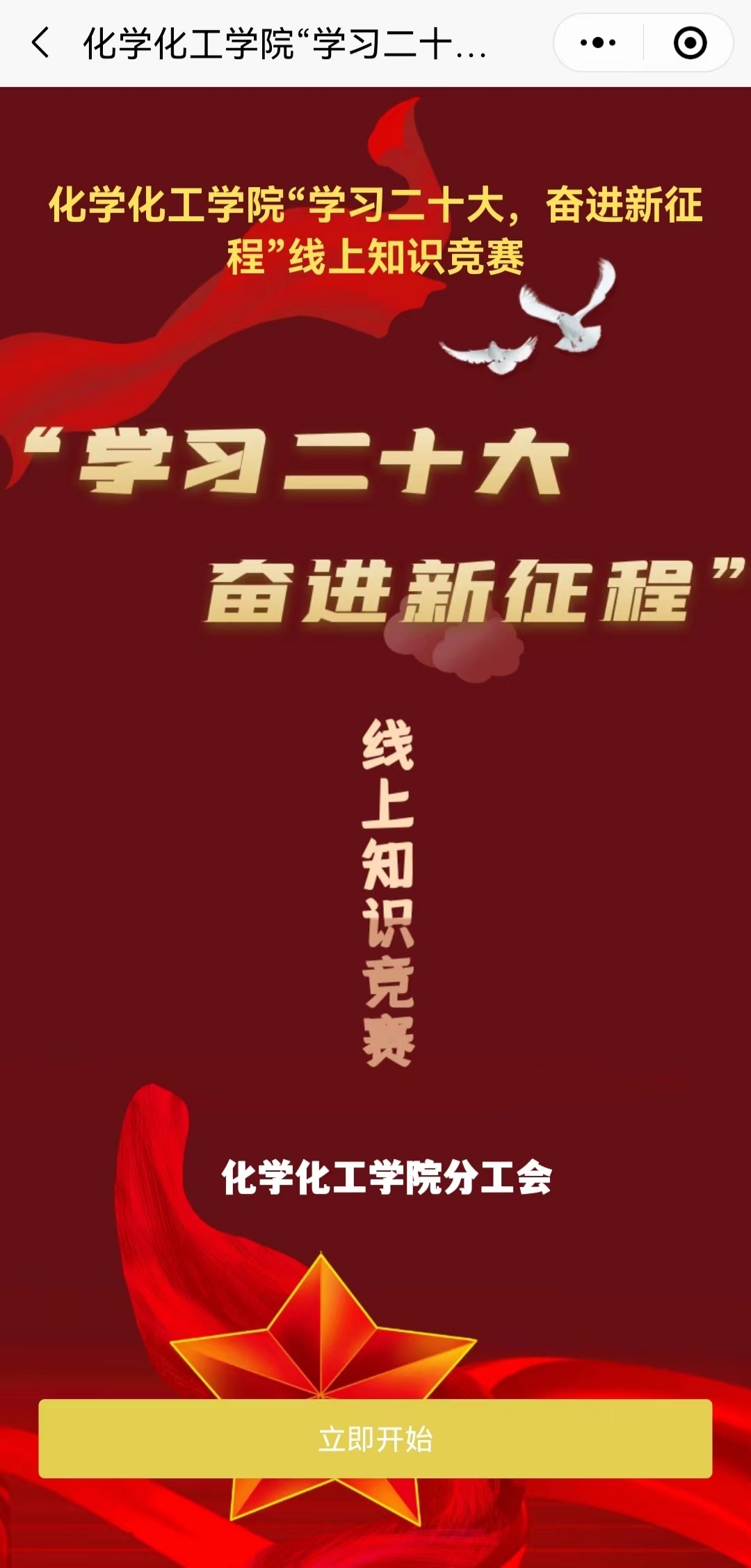 为深入学习贯彻党的二十大精神,激励广大教师踔厉奋发、勇毅前行,12月9日至12月11日,化学化工学院分工会开展“学习二十大 奋进新征程”线上知识竞赛活动。