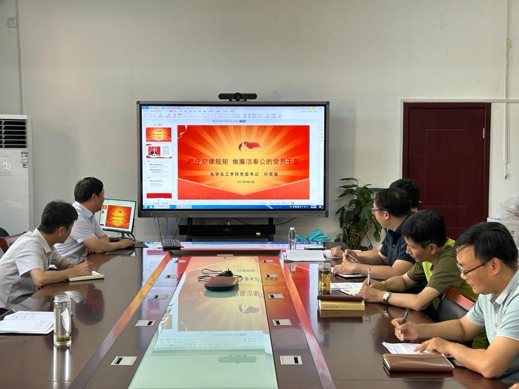 为深入贯彻落实党的二十大精神和习近平总书记关于严明党的纪律和规矩的重要论述,根据学校《关于在全校党员干部中开展“明方向、立规矩、正风气、强免疫”专题纪律教育2023年工作方案》要求,6月29日下午,化学化工学院组织召开廉洁教育专题会议。学院科级以上干部、党支部书记参加会议。
