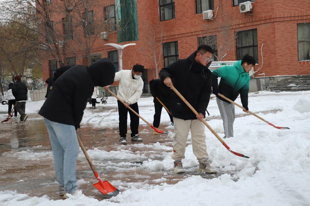 忽如一夜春风来,千树万树梨花开。为确保道路通畅,消除师生出行安全隐患,发挥党员先锋模范作用,12月11日,化学化工学院党委书记孙震寰、党委副书记谷永庆和全体辅导员积极组织扫雪除冰活动,带领学生党员和部分积极分子于学院办公楼前集合扫雪,为我校师生出行保驾护航。