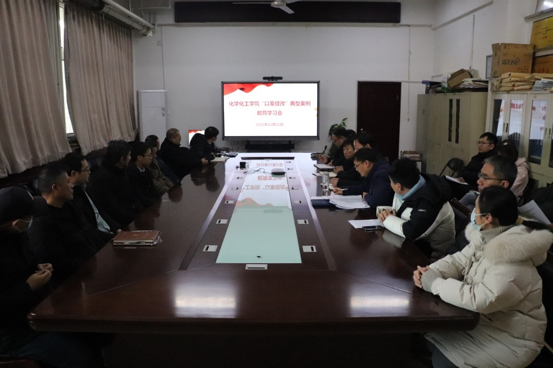 为加强反腐倡廉教育,12月22日下午,化学化工学院在学院会议室召开“以案促改”典型案例教育学习会。学院党委领导班子、支部书记、教研室主任、科级以上干部参加了会议。会议由院党委书记孙震寰主持。